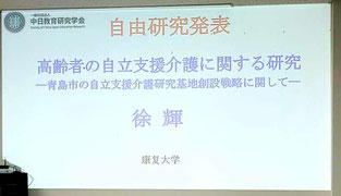徐輝氏(康复大学):高齢者の自立支援介護に関する研究―中国青島市の自立支援介護研究基地創設戦略に関して―